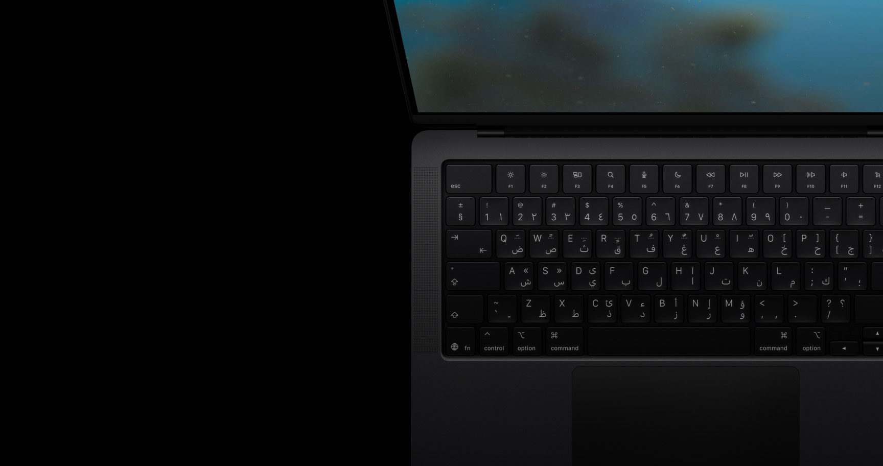 الميكروفونات ومكبرات الصوت. مع مصفوفة من ثلاثة ميكروفونات بجودة الاستوديوهات، ونظام صوت من ستة مكبرات يدعم الصوت المكاني وDolby Atmos، يضيف MacBook Pro تجربة صوتية مذهلة أينما حلّ.