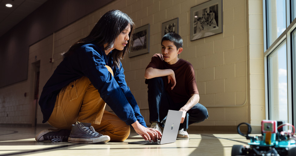 For Santa Fe Indian School (SFIS), becoming a partner meant outfitting its computer science labs with iPad and MacBook devices provided by Apple — and re-invigorating the department led by instructor Kate Sallah. Originally founded by the federal government as a tool to assimilate Indigenous children, the school now educates children from tribes across the Southwest in a manner that supports and preserves their culture and traditions. In addition to courses on Native languages and land preservation, the computer science program, in partnership with the Santa Fe Creative Coding Initiative, incorporates digital creativity and coding into its curriculums. Students take on projects centred in their own tribal identities and learn skills to share with their local community.