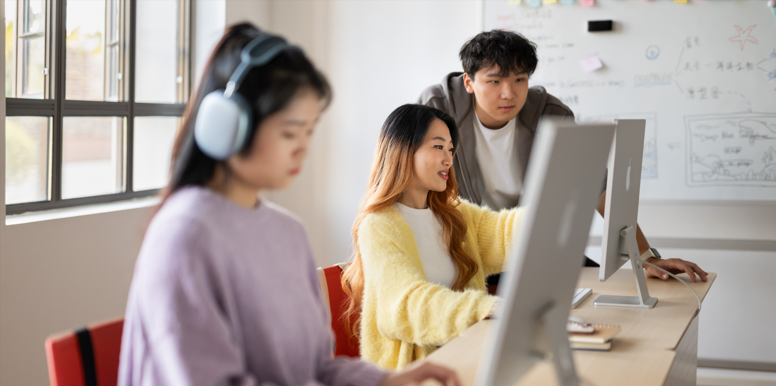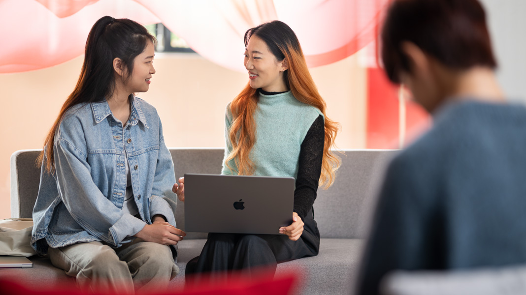 For Ruoshan, the power and versatility of Mac means she can move between coding and her social studies classes without skipping a beat. She prototypes her apps using Figma, creates design elements in Adobe Photoshop, and then brings it all to life with Swift in Xcode. In her social work studies, she uses Keynote for presentations and annotates materials on Noteful.