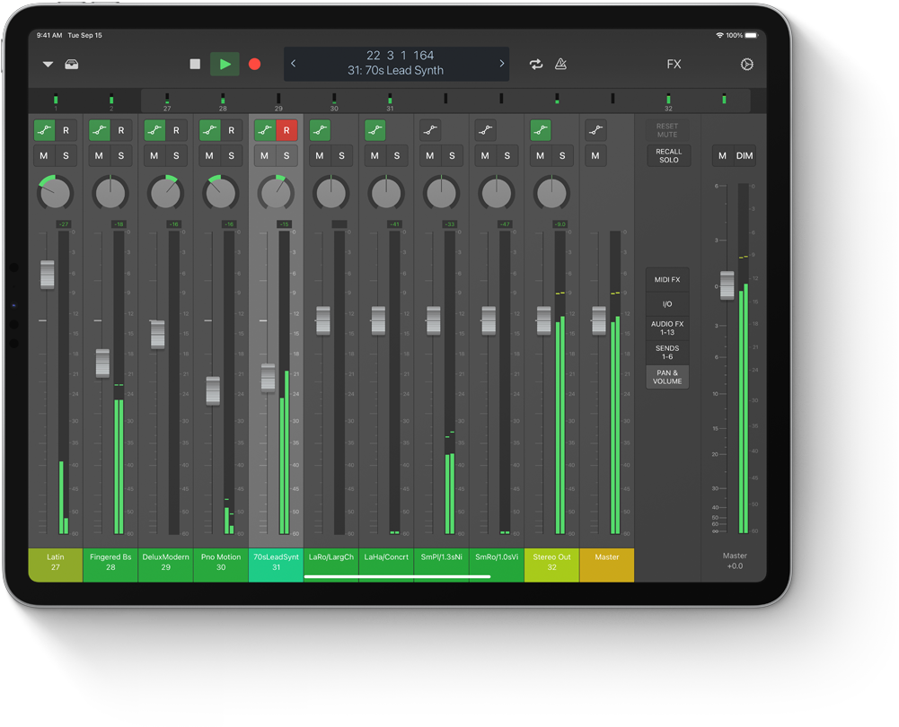 iPad Pro. Lorsque de nouvelles idées de composition lui viennent à l’esprit, Bradley Hughes se sert de Logic Remote sur iPad pour jouer des instruments logiciels, réaliser des enregistrements et mixer des pistes du bout des doigts avec les gestes Multi-Touch – où qu’il se trouve dans la pièce.
