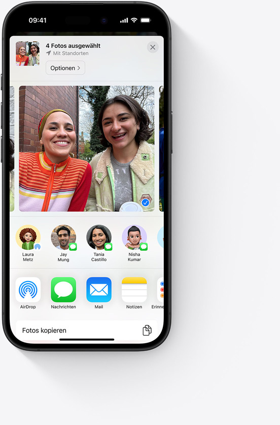 Mit der geteilten Fotomediathek kannst du ausgewählte Fotos und Videos ganz einfach und nahtlos mit bis zu fünf anderen Personen teilen. Die Inhalte aus deiner geteilten Fotomediathek erscheinen in Empfohlene Fotos und in Rückblicke, damit du deine Erlebnisse noch einmal erleben kannst – mit von allen aufgenommenen Fotos.