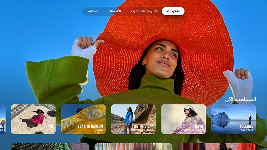 الصور. تمكّنك مكتبة صور iCloud المشتركة من الاستمتاع بصور كل فرد من العائلة بطريقة أسهل من أي وقت، وعرضها كلها مباشرة على التلفزيون. وبإمكانك أيضاً اختيار "الذكريات" كشاشة توقف، ورؤية لحظاتك المميزة تنبض بالحياة على الشاشة الكبيرة.