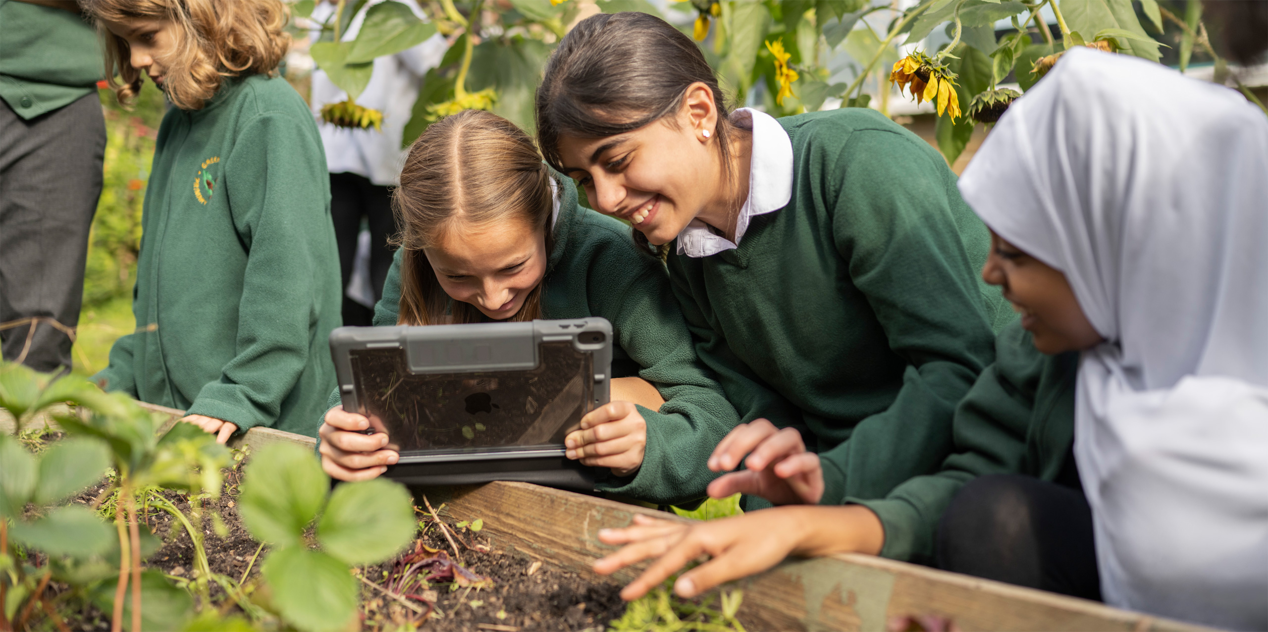 En la cocina, usan Notas para seguir recetas, iMovie para crear tutoriales en vídeo y Keynote para diseñar etiquetas nutricionales. También analizan muestras de tierra en el huerto y registran sus hallazgos en Numbers para averiguar cómo pueden obtener alimentos más nutritivos. Además, hablan por FaceTime con personas dedicadas a la agricultura de todo el Reino Unido para saber cómo se cultiva de forma sostenible a gran escala.