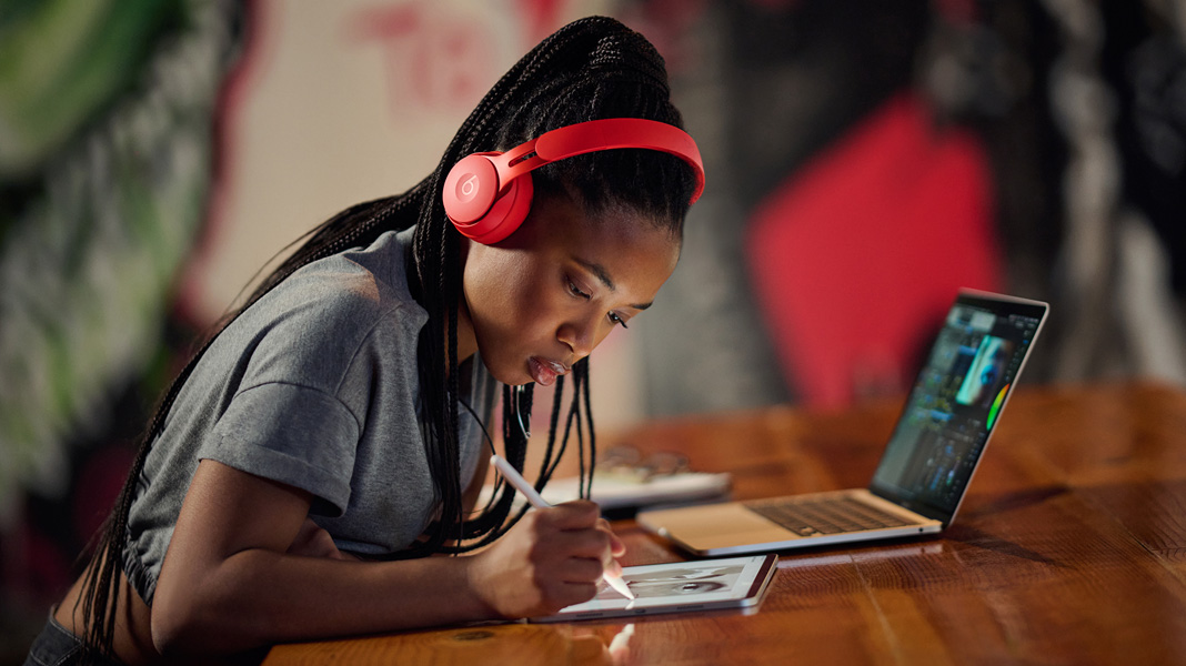 Miya a récemment participé en tant que réalisatrice au programme Beats Black Creators, qui réunit des étudiantes et étudiants des universités historiquement noires (HBCU) de tous les États‑Unis et les invite à faire travailler leur imagination, à se tourner vers l’avenir et à collaborer sur un film. C’est dans ce cadre qu’elle a mis en œuvre son workflow préféré sur Mac, composé de l’app Celtx Script pour l’écriture, de l’app Pitch pour les traitements et de Notes sur iPad pour la production. « Dès que je crée, il faut avant tout que je veille à m’organiser. Les produits Apple se chargent de rationaliser le processus créatif », confie Miya.
