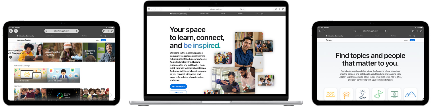 Apple Education Community는 전문 교육을 위한 새로운 허브로, 모든 교육자를 위한 온라인 협업 리소스입니다.