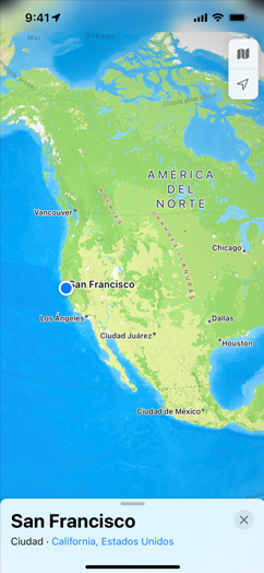 • La actualización a iOS 15, iPadOS 15 y macOS Monterey te permite disfrutar de las últimas funcionalidades de Mapas, como el globo interactivo, las experiencias en 3D para ciudades como San Francisco, Los Ángeles, Nueva York y Londres, el transporte público cercano y mucho más.