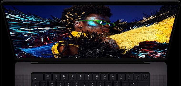 Liquid Retina XDR display with up to 1600 nits of brightness, 1,000,000:1 contrast ratio, and up to 120Hz refresh rates.