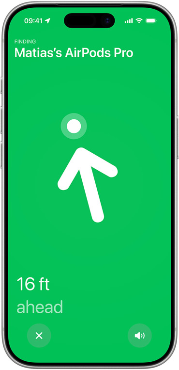 Charging case. Next-generation Ultra Wideband technology increases the distance of Precision Finding by 1.5x,12 so you don’t lose track of your AirPods.